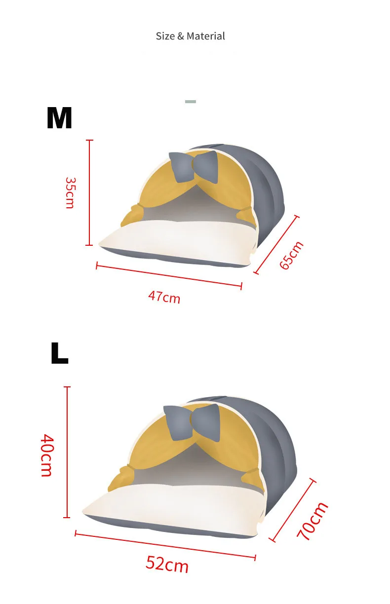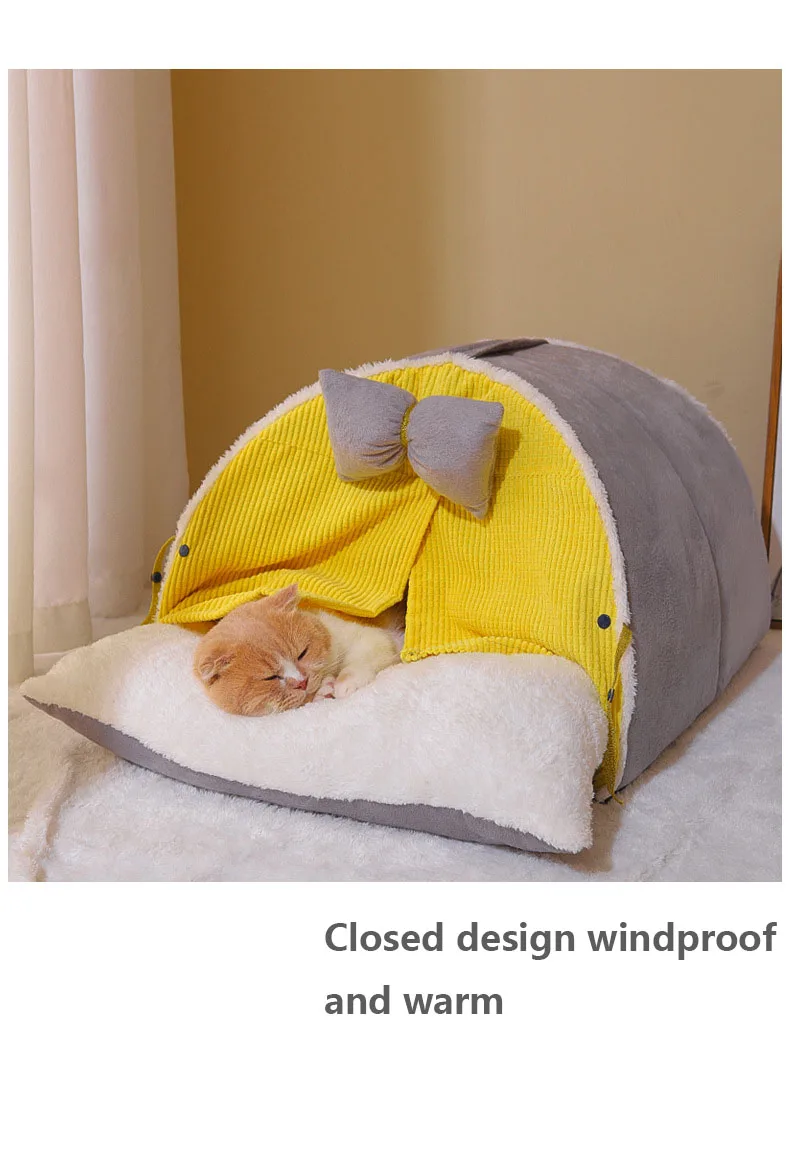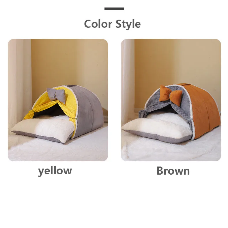 1. Product Name: Luxurious semi-enclosed cat kennel bed tent and mattress, cute decorative PP cotton filling warm breathable all seasons yellow coffee color
